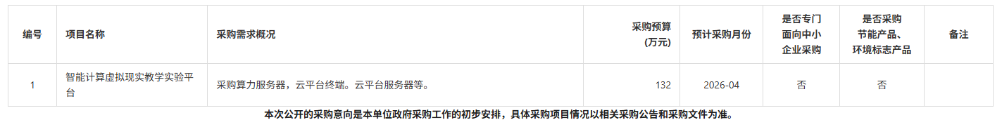 为便于供应商及时了解政府采购信息,根据《江苏省财政厅关于做好政府采购意向公开工作的通知》等有关规定,现将南京信息工程大学2026年3月(第5批)政府采购意向公告如下:南京信息工程大学招标办2026年3月25日