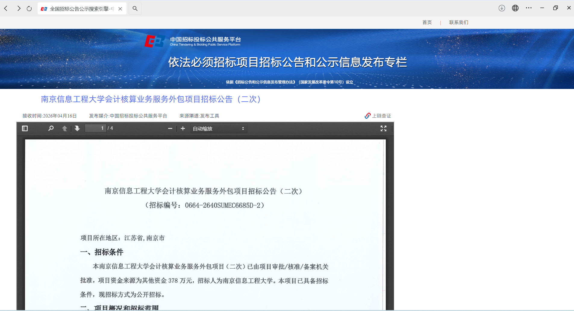 南京信息工程大学会计核算业务服务外包项目招标公告(二次)网页截图.png
