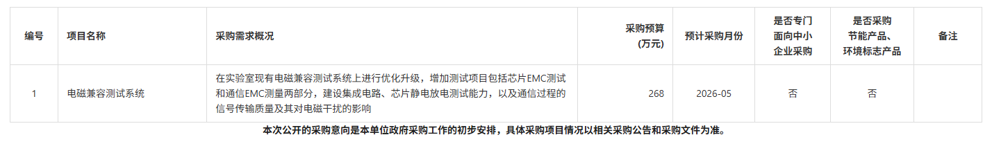 为便于供应商及时了解政府采购信息,根据《江苏省财政厅关于做好政府采购意向公开工作的通知》等有关规定,现将南京信息工程大学2026年4月(第4批)政府采购意向公告如下:南京信息工程大学招标办2026年4月20日